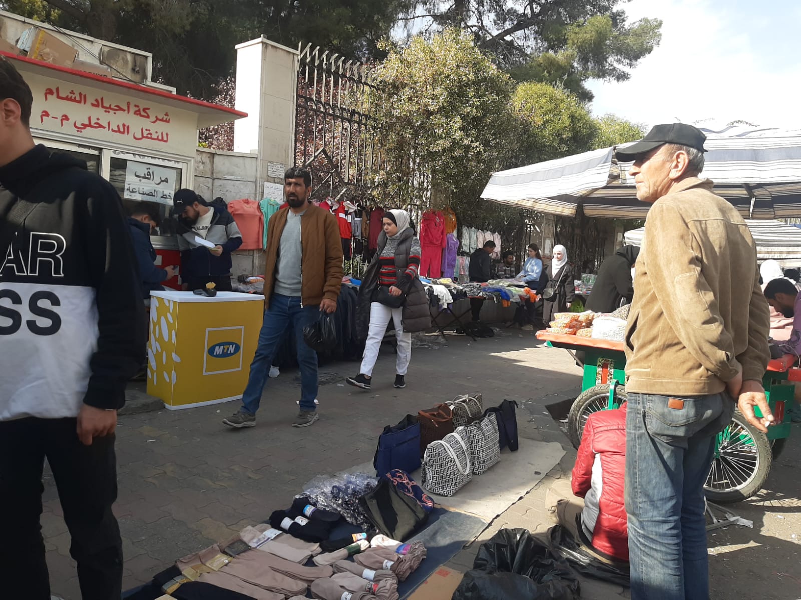 أثناء تجوّل فريق "السوري اليوم" بين البسطات، بدأ أصحاب العربات فجأة بدفع عرباتهم والهرب بسرعة نحو الأزقة، فيما حمل آخرون بضاعتهم وهم يركضون دون معرفة سبب واضح. وبعد السؤال، قال أحد الباعة وهو يجمع بضاعته على عجل: