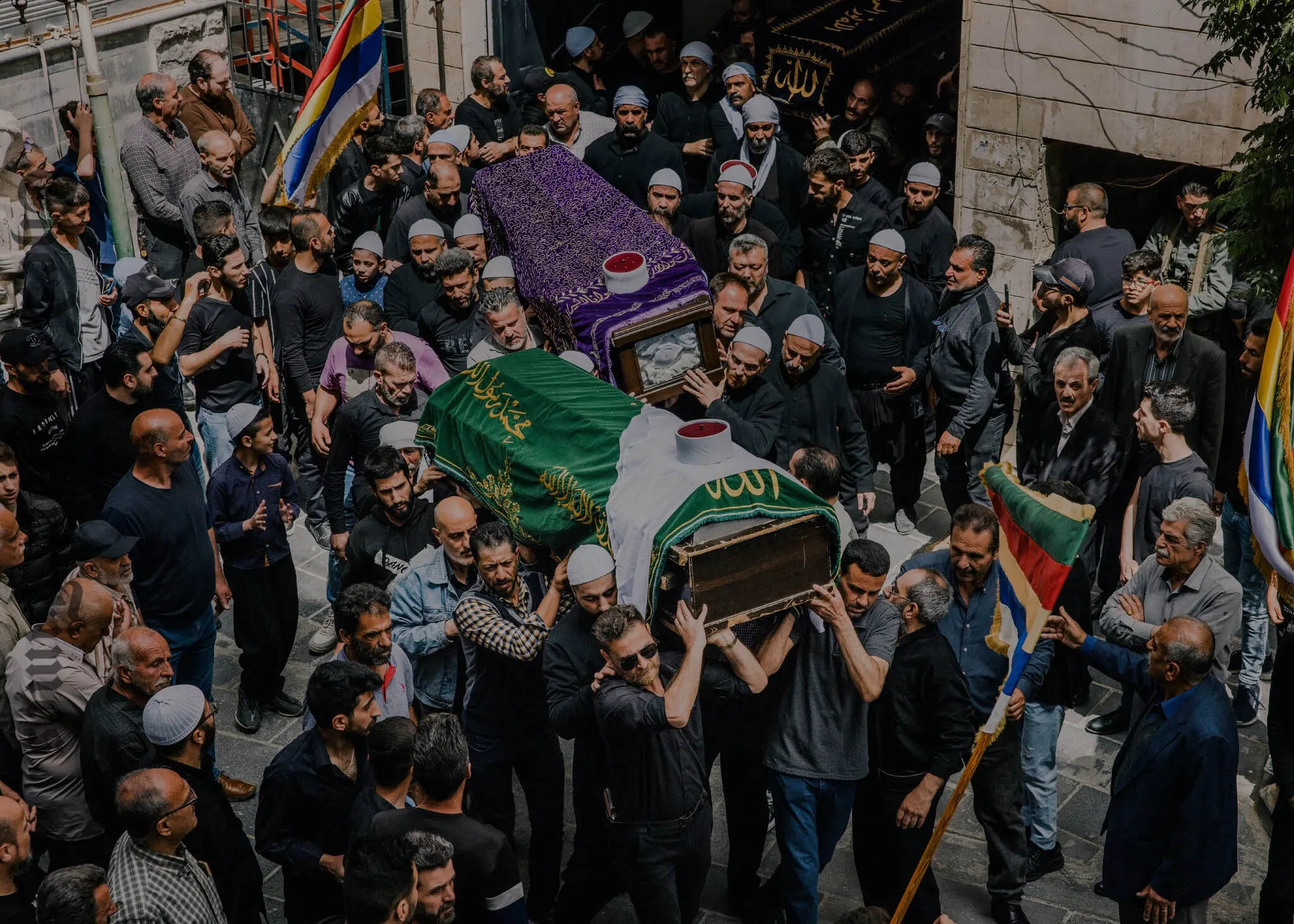 في قاعة دينية فسيحة، جلس مسؤولان حكوميان إلى جانب شيوخ الطائفة الدرزية، بعمائمهم البيضاء ذات القمم الحمراء، يتحدثون عن المصالحة والوحدة. قال جميل مدوّر، أكبر مسؤول في المنطقة: